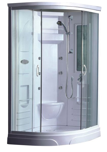 καμπίνα λευκή πλήρης χωρίς ατμό, με κάθισμα, με κρύσταλλο ασφαλείας 5mm, διάφανο τζάμι